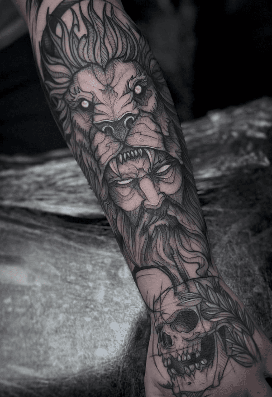 Kong thrives on expressive, sketch-inspired designs, often referred to as his notorious “skin scribbles” for their raw, dynamic aesthetic. His work blends spontaneity with precision, making each piece unique while maintaining clear structure and flow.